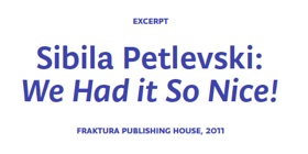 Petlevski’s novel, Night Training, is an outstanding, subtly sophisticated prose, full of remarkable amalgams. The narrator of this novel wanders around big European cities encountering along her way a palette of typical and extraordinary, memorable and moving characters in the atmosphere of dark clubs and trendy salons. She is terminally ill, heavily medicated and deeply immersed in the world of literature and jazz. Blending dreams and real life, with a dose of fine humor and social irony, Sibila Petlevski’s novel speaks about contemporary, urban everyday life, about young, lost intellectuals, about the world that is going through changes and that offers no other possibility but to wander.